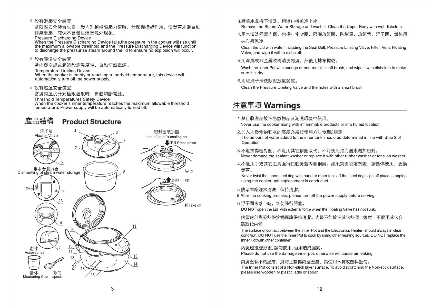 Primada PC-5610 - Pressure Discharging Device; Temperature Limiting Device; Threshold Temperatures Safety Device; Product Structure