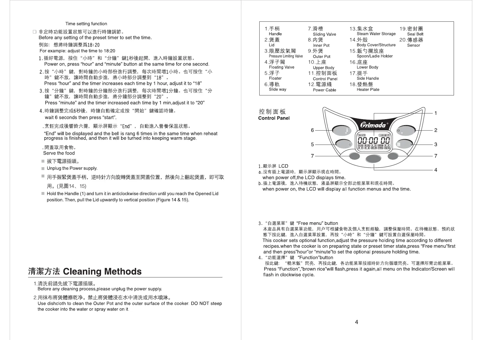 Power on, press โPreset timerโ and โFree Menuโ button.