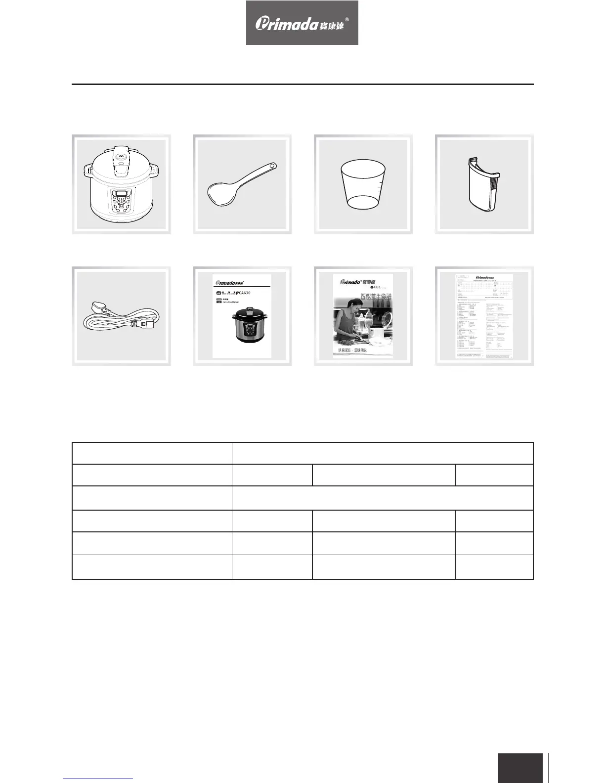 Primada PCA630 - Product Composition and Specifications; Package Contents; Technical Specifications