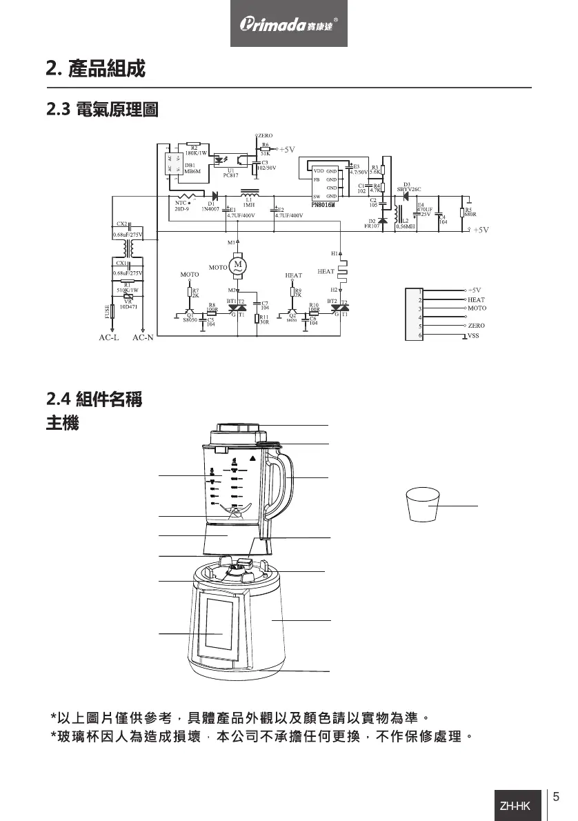 Primada PS810 - 電器原理圖; 組件名稱