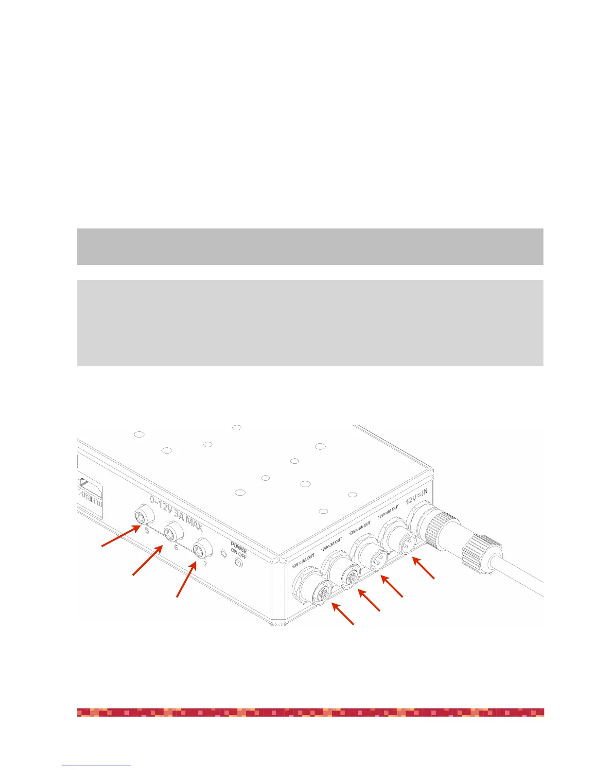 cable from unwanted disconnections or reverse polarity. 3 power outputs have 3 amps fuse protection each and 1 port