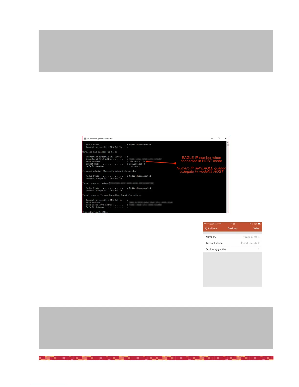 Please type “ipconfig” and press ENTER again. You will see a line with the IP number of your EAGLE connected to your