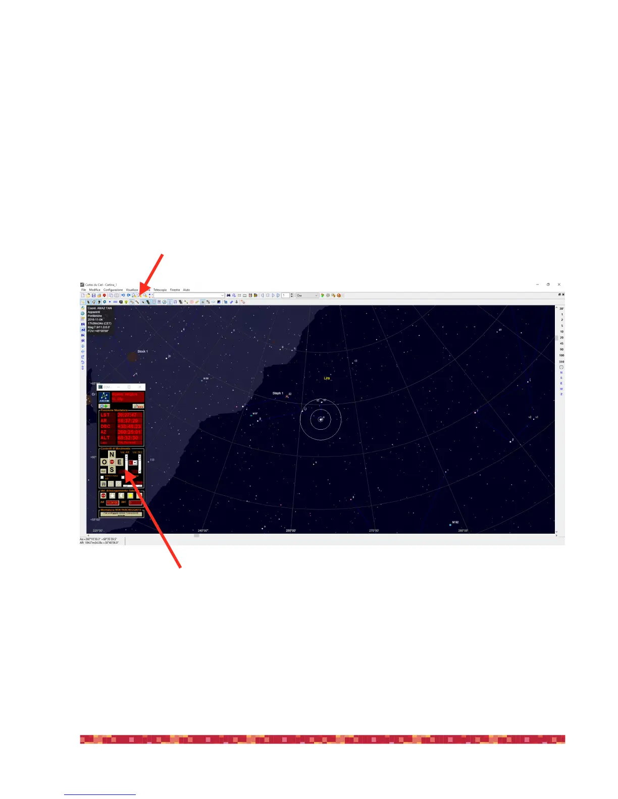 9) When done, select the object you’re pointed in (in this example Vega star), make a mouse right-click, select “Telescope” and then