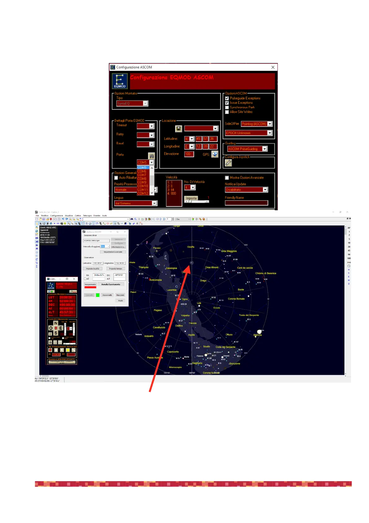 5) Press OK in the “ASCOM Telescope Chooser” window and then press the “Connect” button in the ASCOM interface” window. The