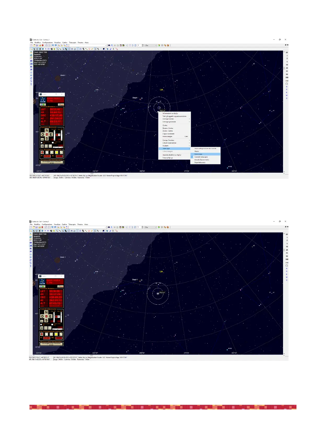 11) When you want to disconnect the planetarium software from the mount, select “Telescope” then “Control panel” and then “Discon-