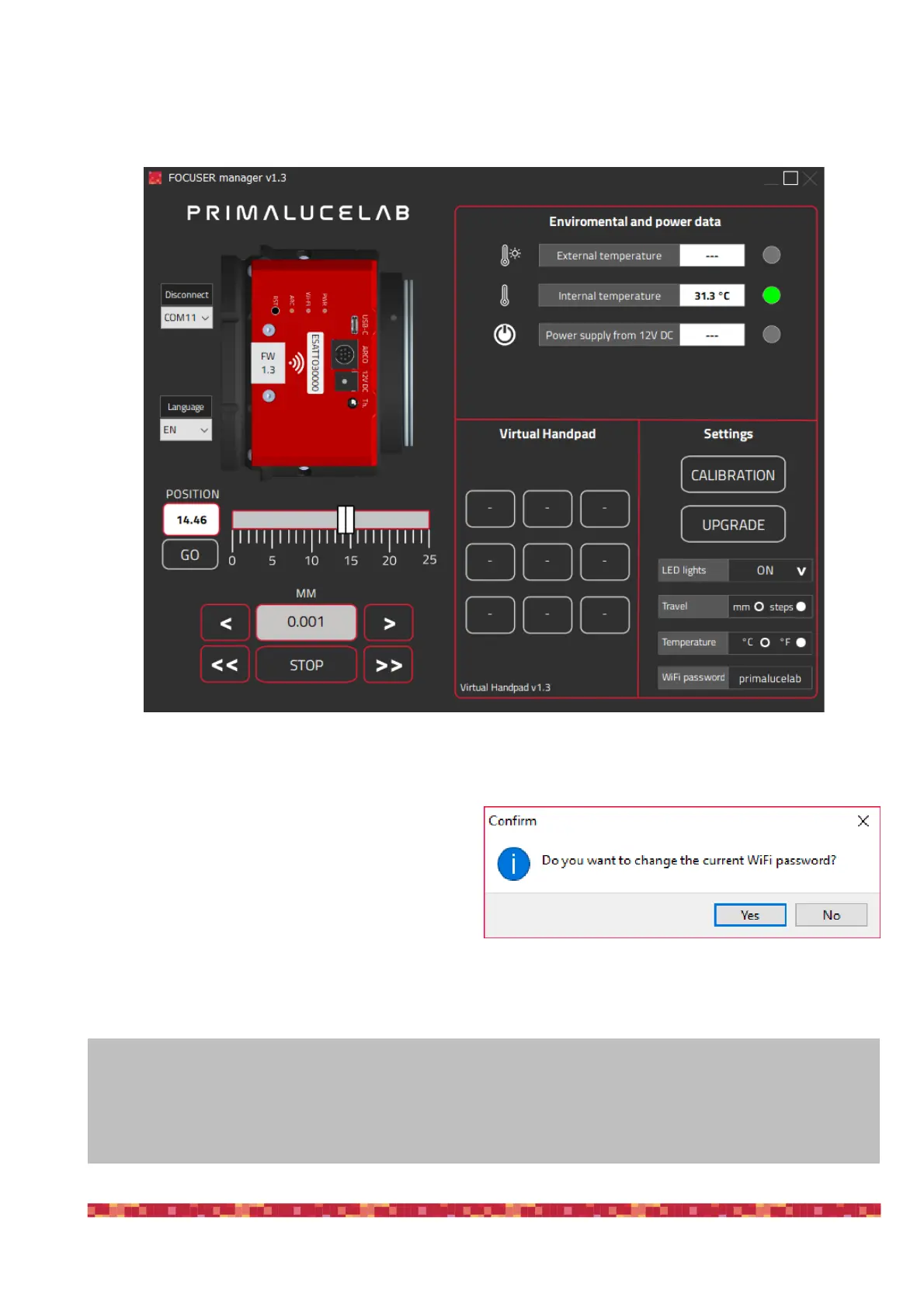 vel directly in millimeters moving the focuser both with the slider and by using the movement buttons.