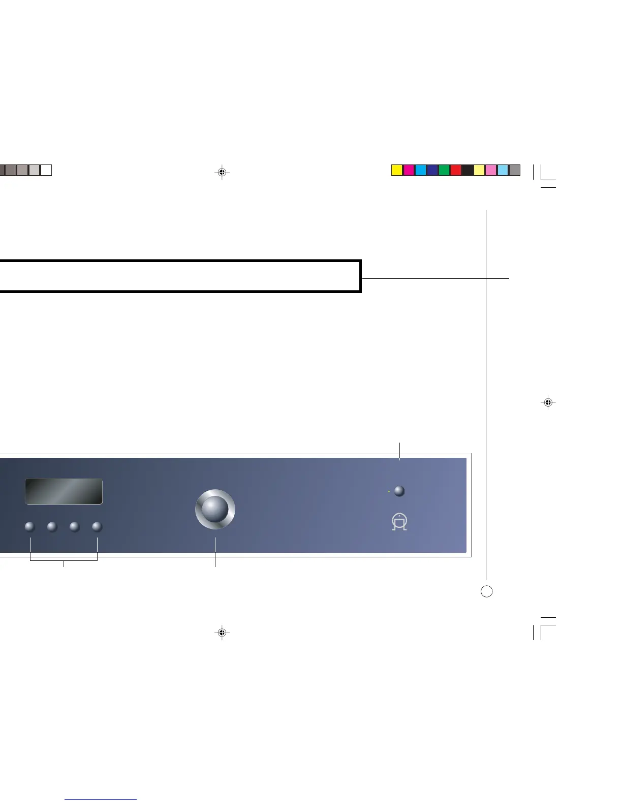 front panel push buttons and volume control, and information about its