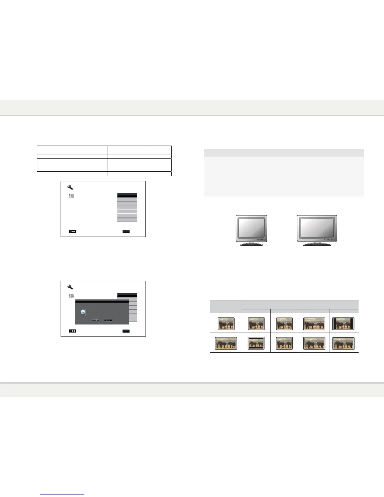 The Aspect Ratio selections are 4:3 Letterbox, 4:3 Pan & Scan, 16:9 Wide and 16:9 Wide/Auto. Depending