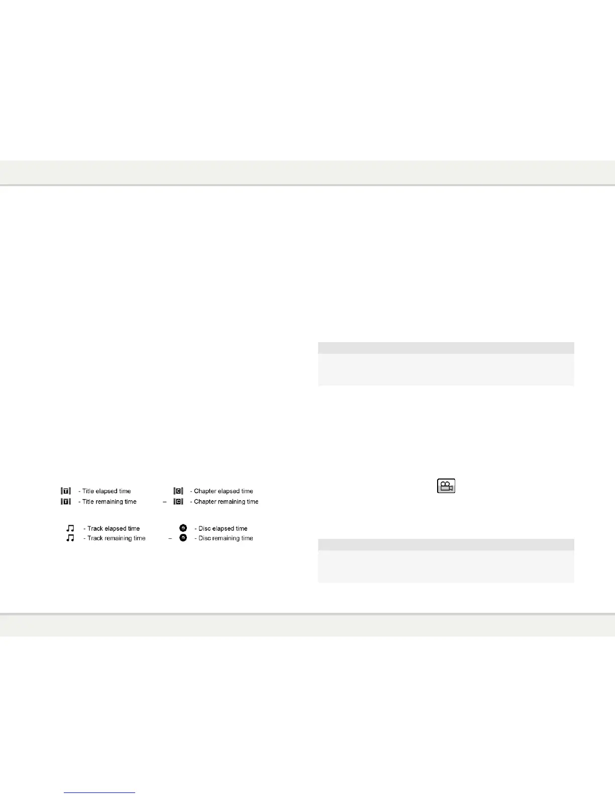 • Current and total title numbers. (DVD and Blu-ray Discs)