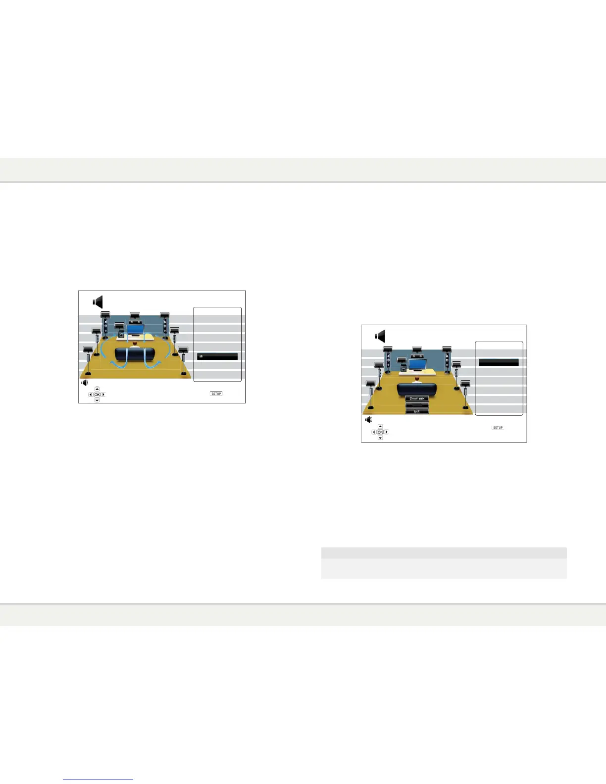 The current down mix mode is displayed in the lower right corner of the speaker placement illustration.