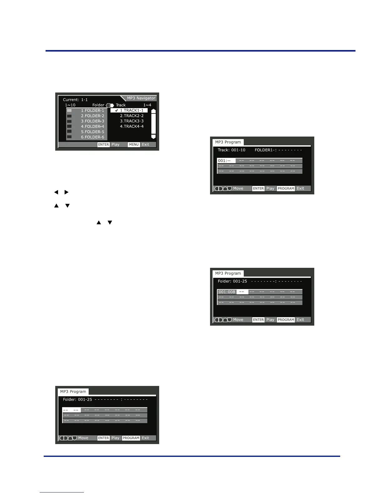 MENU Exit the MP3 Navigator