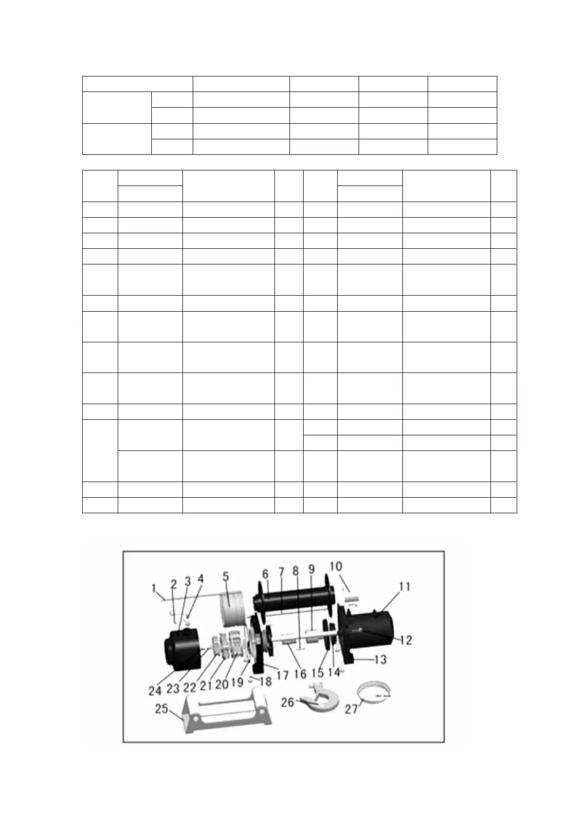 12000LBS WINCH PARTS LIST