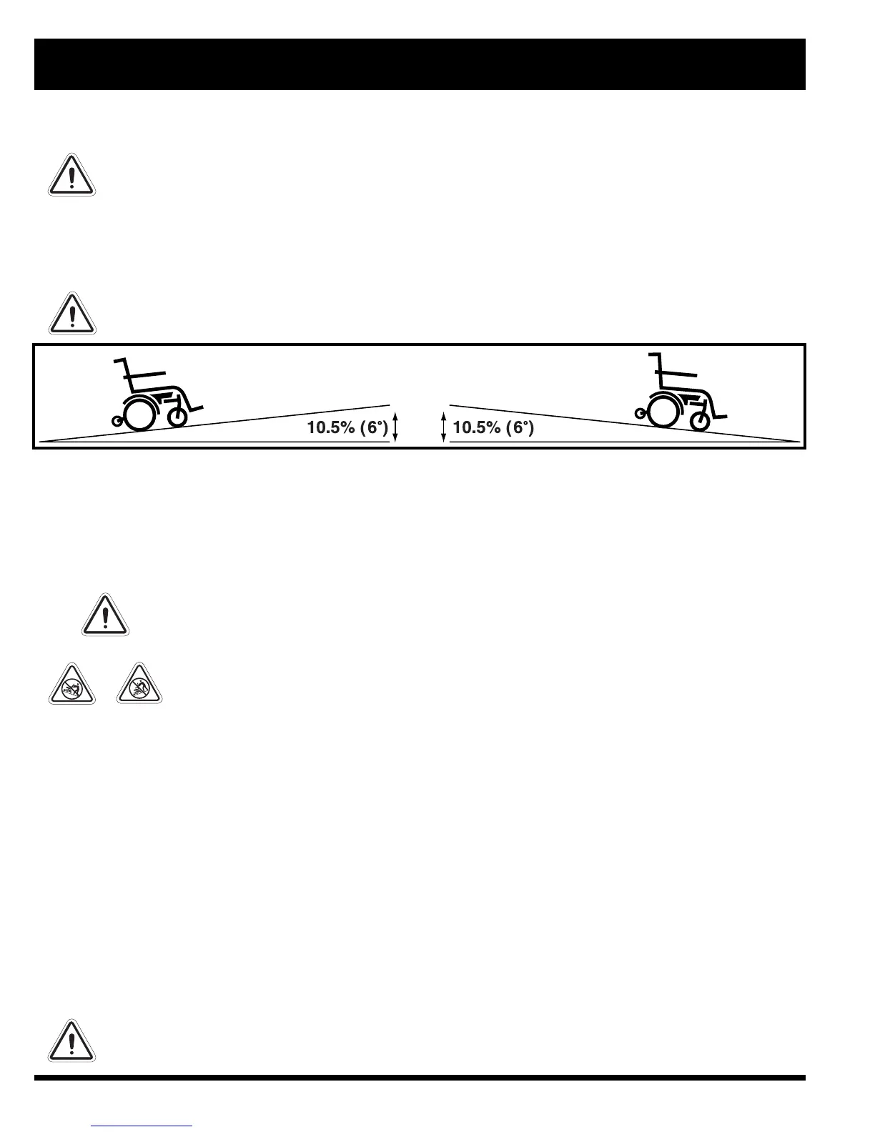 WARNING! Any attempt to climb or descend a slope steeper than 10.5% (6°) may put your power