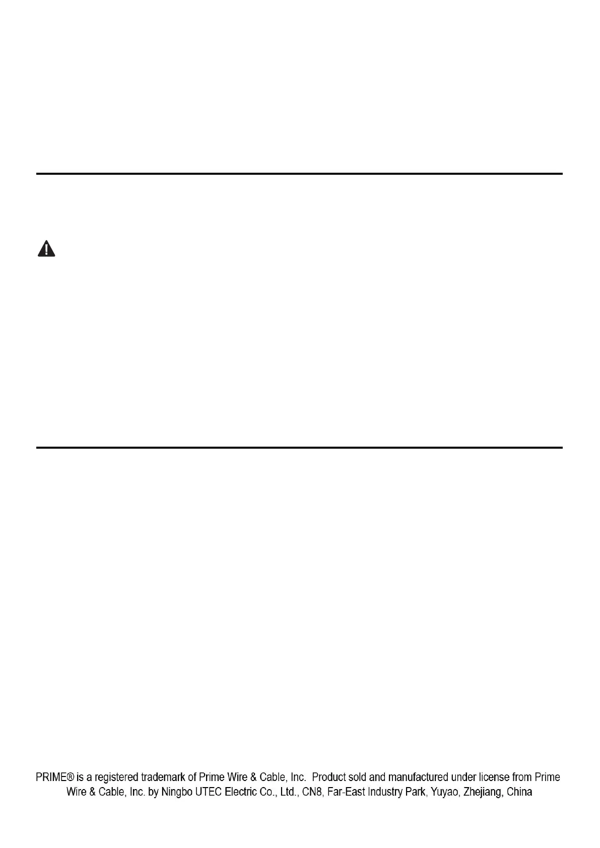 Product warranty by Ningbo UTEC Electric Co., Ltd., CN8, Far-East Industry Park, Yuyao, Zhejiang, China. Prime Wire