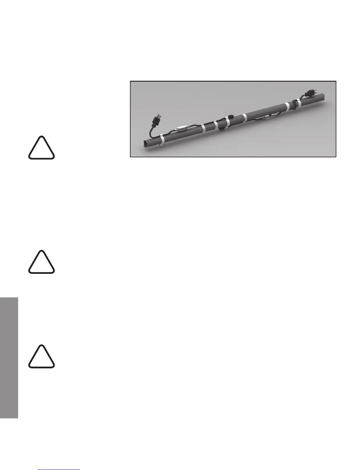 • No use sujetadores metálicos, como correas o amarres para tuberías a fin de afianzar el cable calefactor, ya que puede dañarlo y
