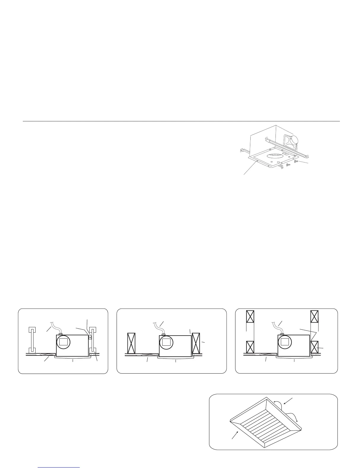 9. Level the fan housing and attach the third and fourth hanger bar ends to the next joist. Adjust and tighten the screws.