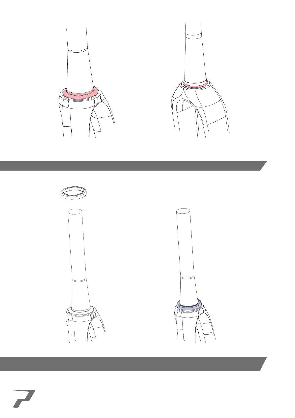 3. Slide the lower Prime headset bearing over the fork steerer and seat this onto the crown race/bearing surface.