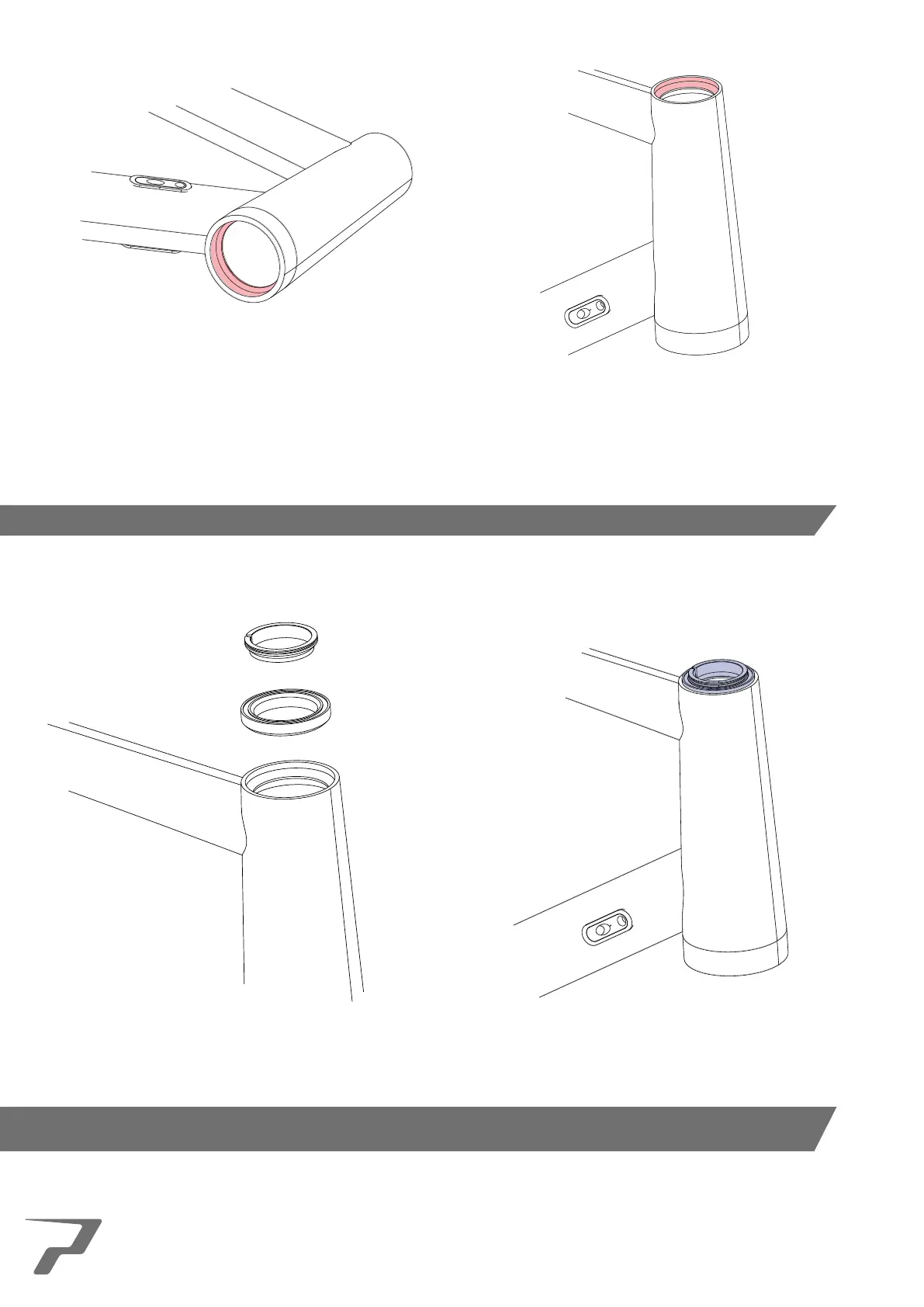 5. insert the top headset bearing into the frame ensuring that it is orientated correctly. Once seated press the