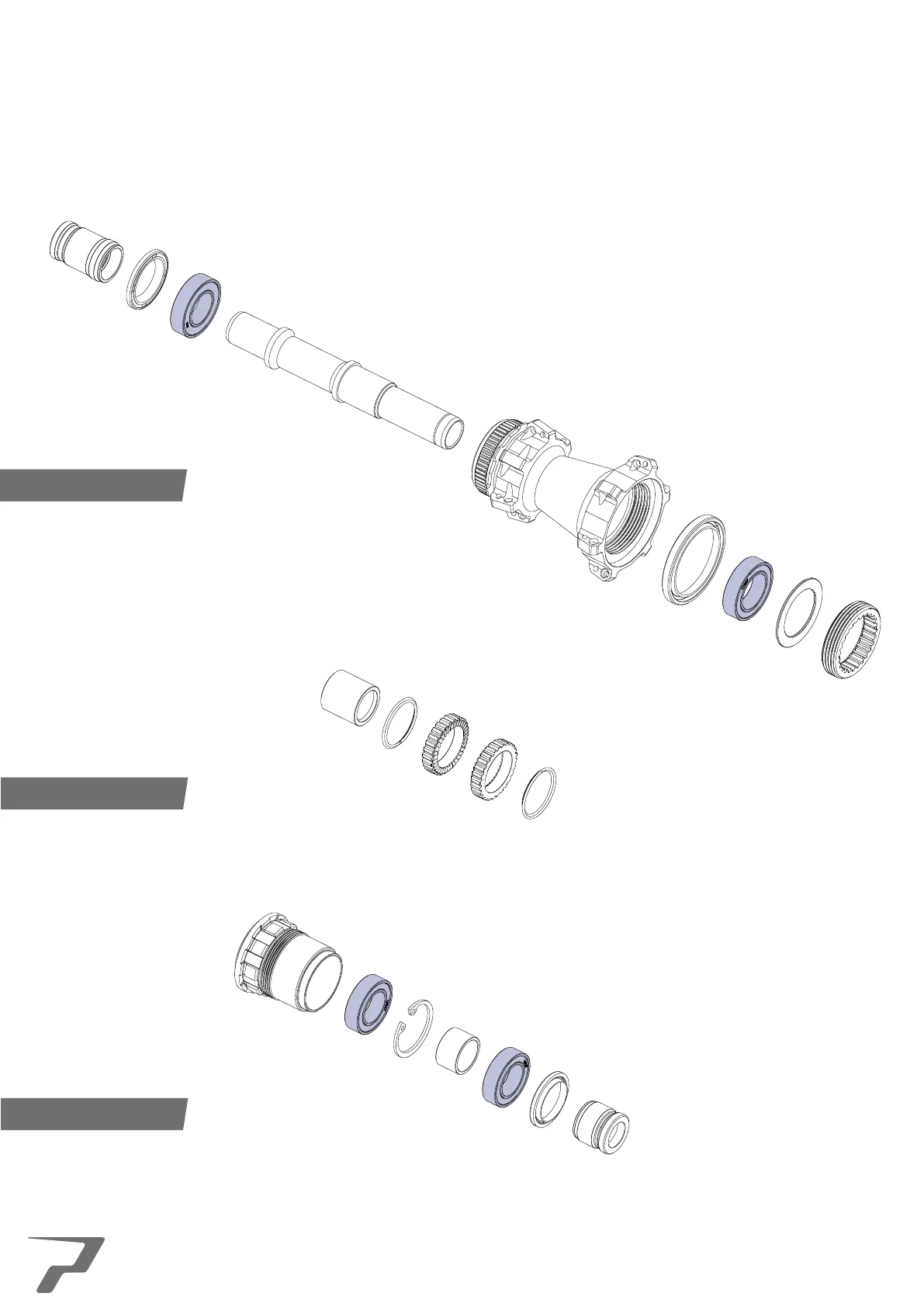The hub should now be fully disassembled. The below illustration shows the break down of the hub in 3 sections, hub body,