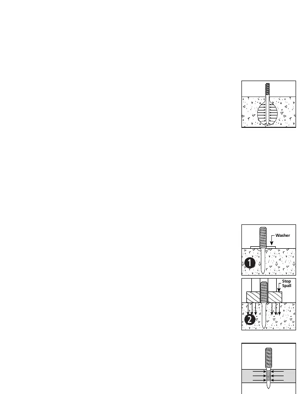 embedded area of the fastener shank. As this occurs, the concrete directly surrounding the fastener is com-