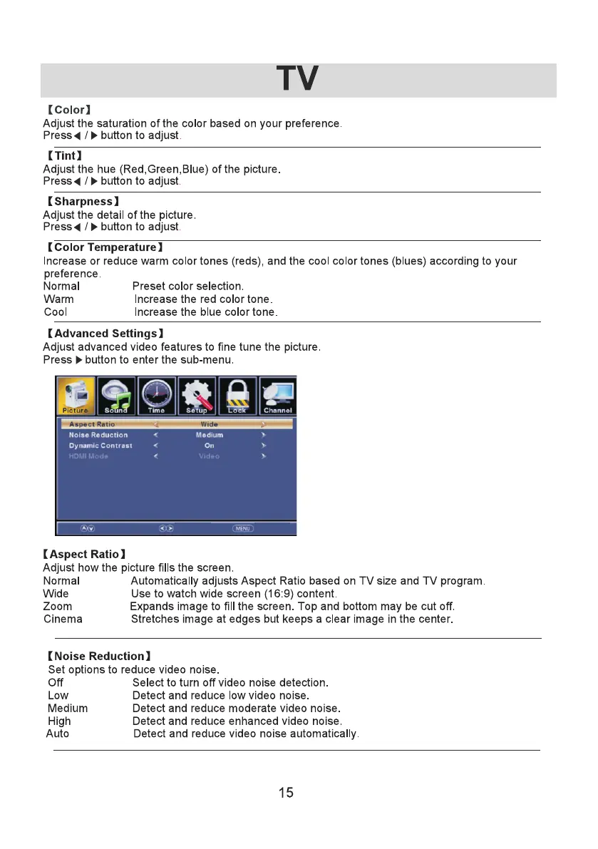 PrimeCables Cab-LE32D11 - Color and Tint Adjustment; Sharpness and Color Temperature
