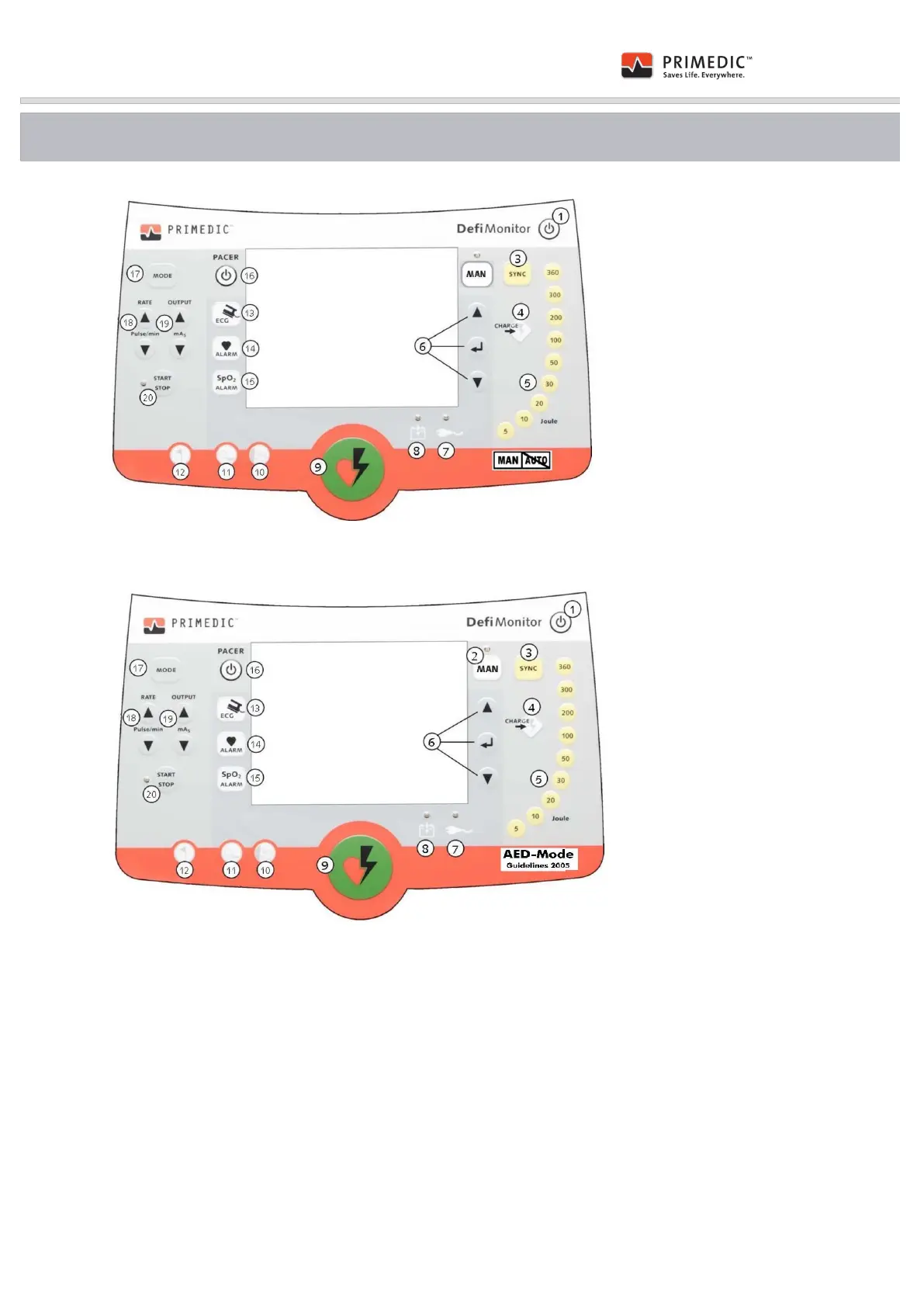 Fig. 12: Panel foil PRIMEDIC™ DefiMonitor XD 1/10/3/30 (completely manual defibrillators)