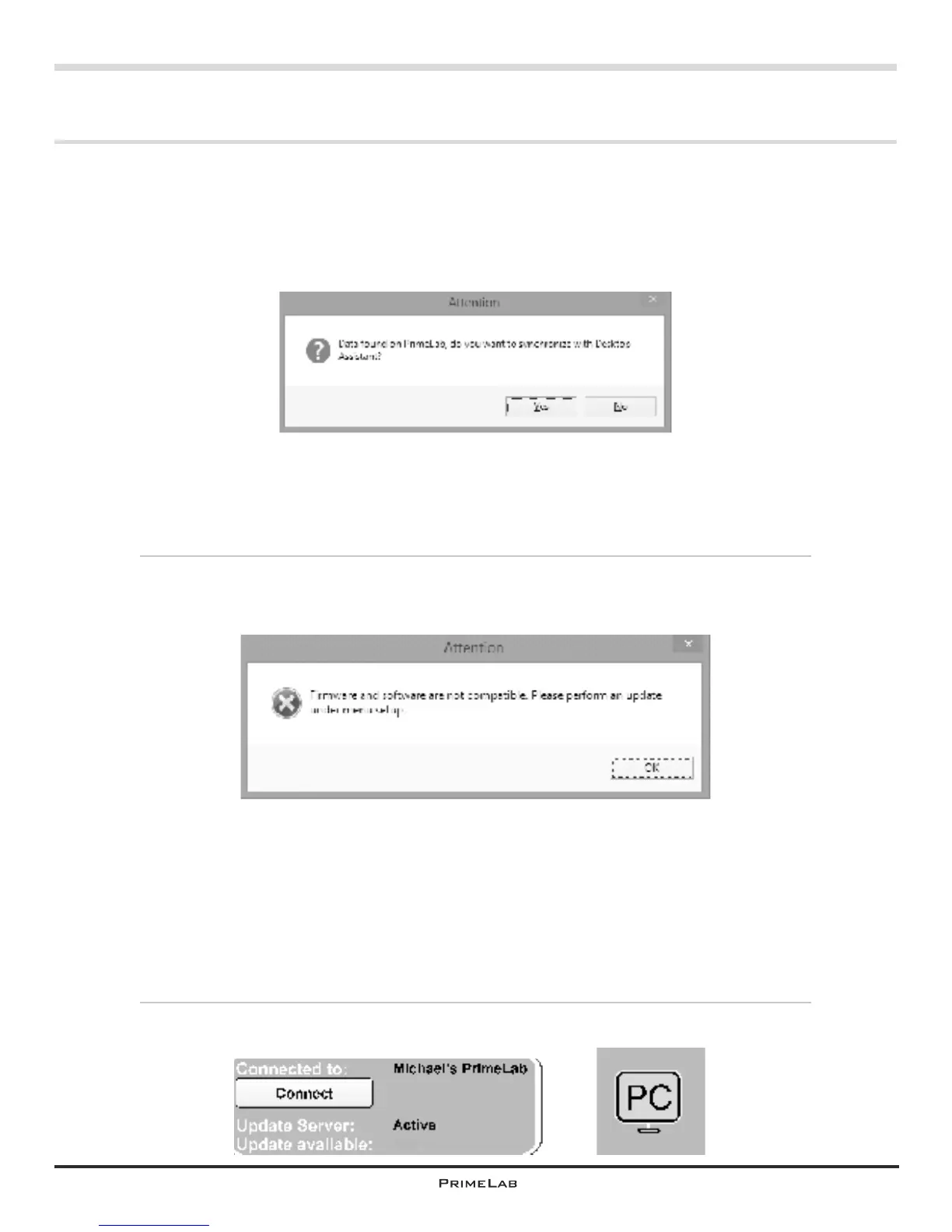 message “Data found on PrimeLab. Do you want to synchronize?”