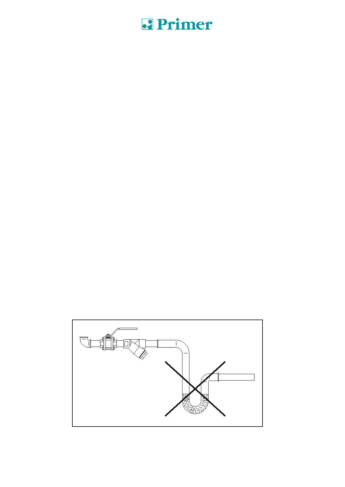 La tubería de derivación a la máquina con una inclinación negativa y sin ningún