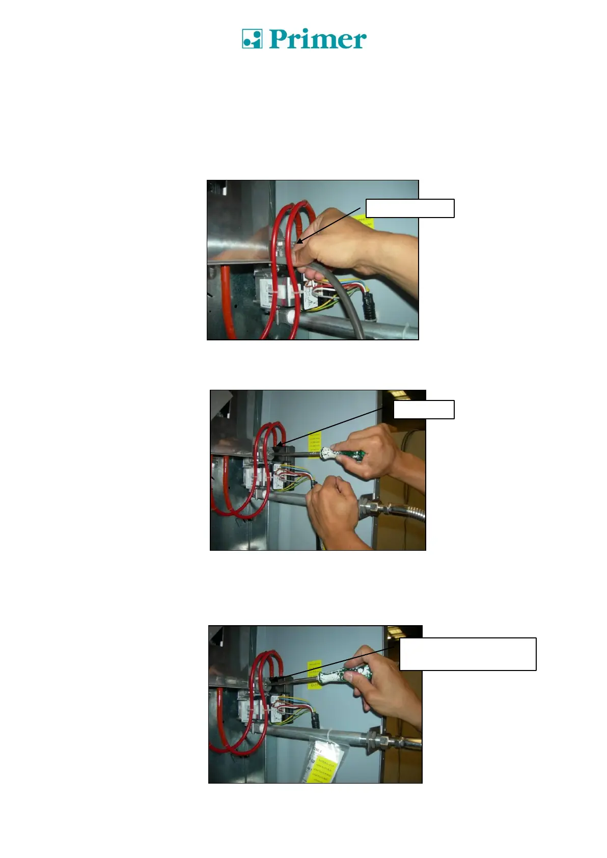 7- Die Schraube (C) für den Gaseinlass so lange drehen, bis der erforderlich Druck im Sinne der