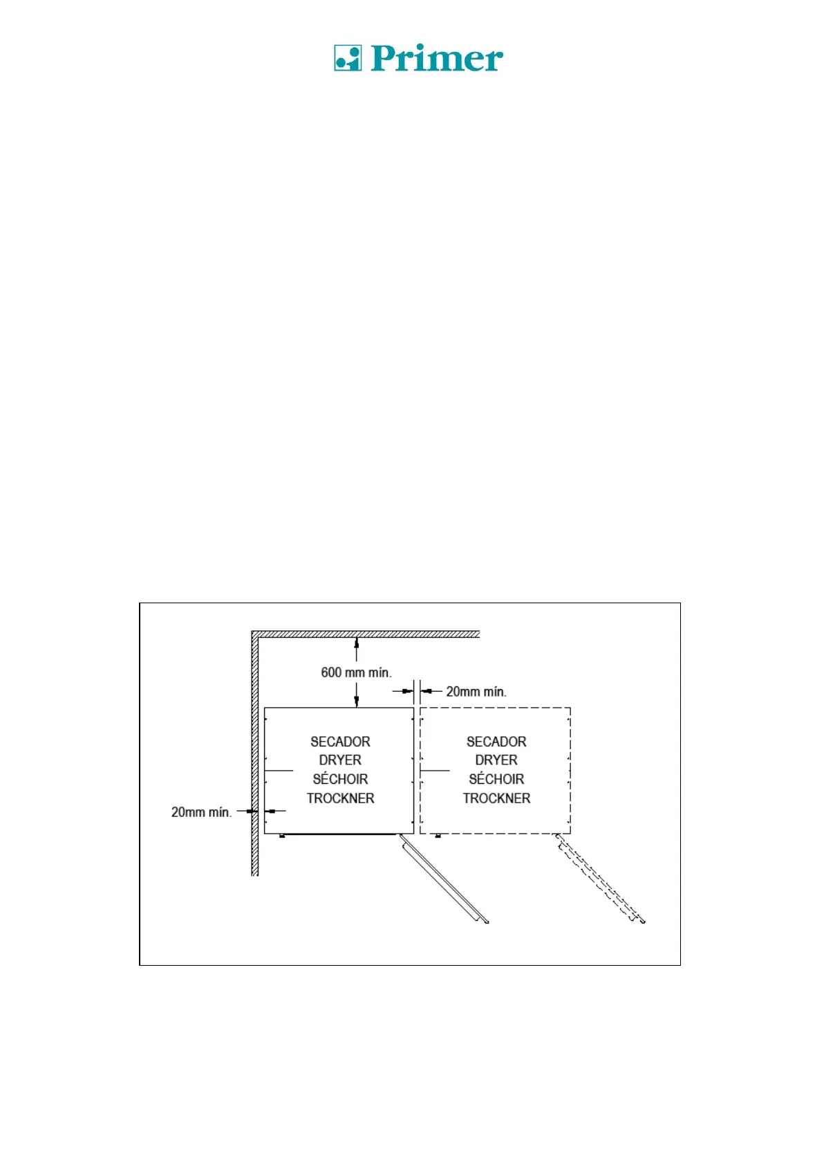 Spazio minimo di manovra: 1,50 m. sulla zona frontale e il resto in base allo schema.