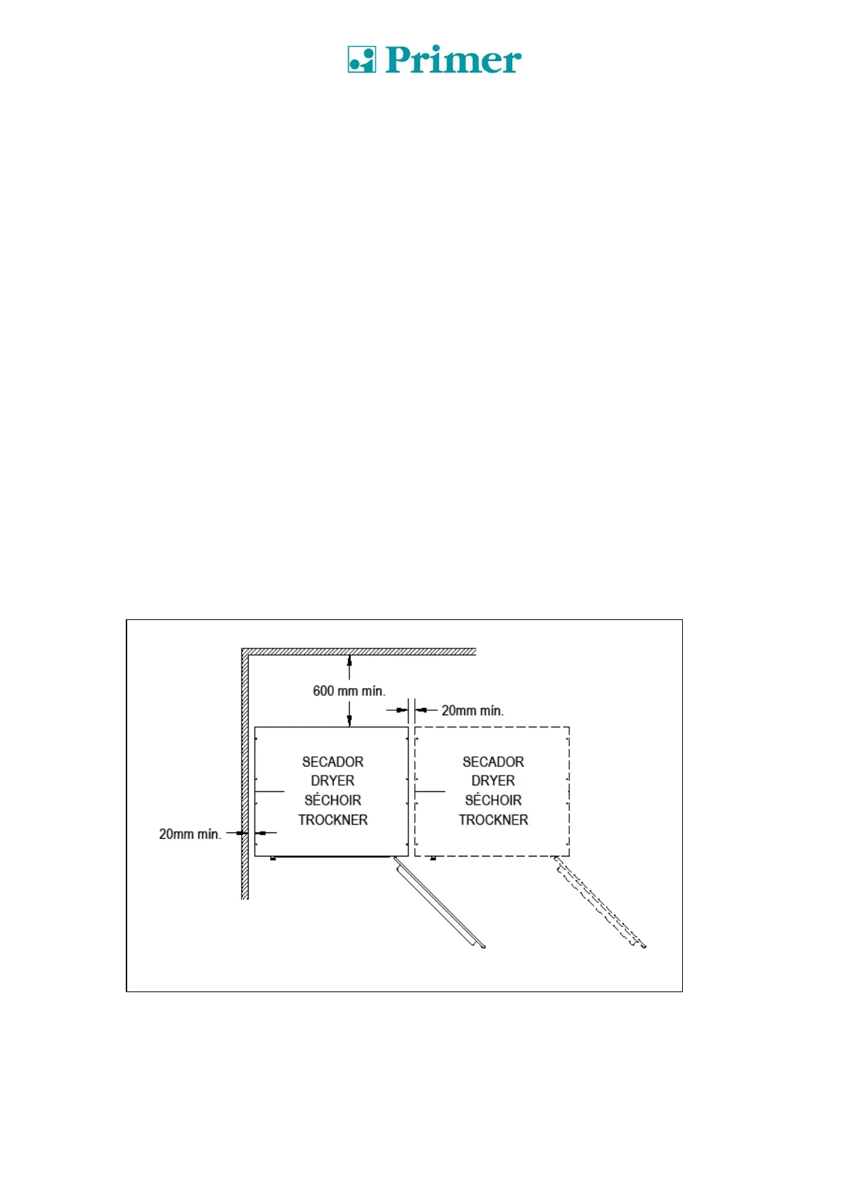 La posición definitiva de la máquina debe permitir su correcto uso. Deben respetarse las distancias