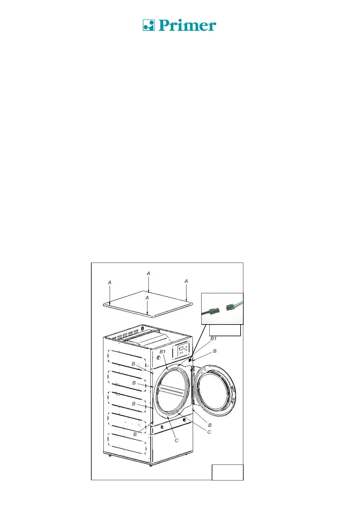 3. Отсоединить переднюю крышку путем ослабления 6 болтов "В" и открыть дверцу для получения доступа к