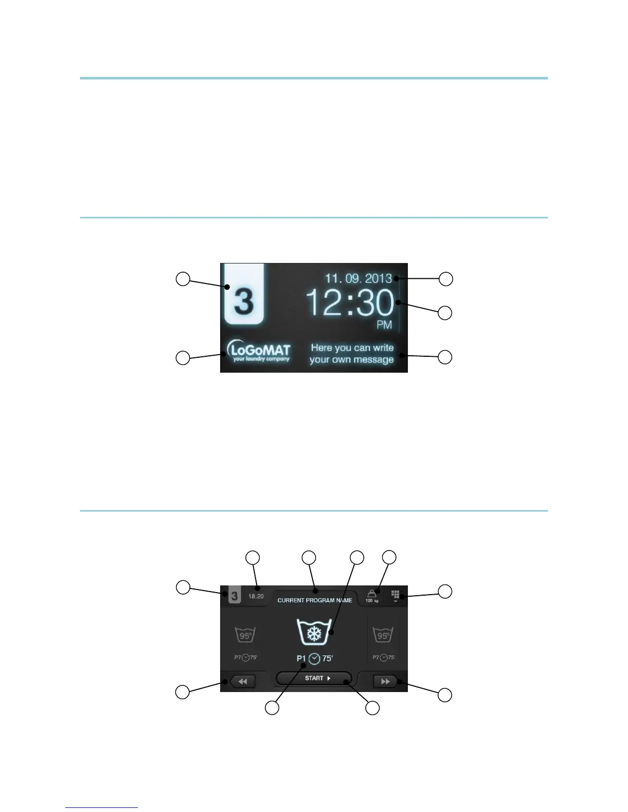 The Main screen of the washing machine is as follows, and displays each of the available options.