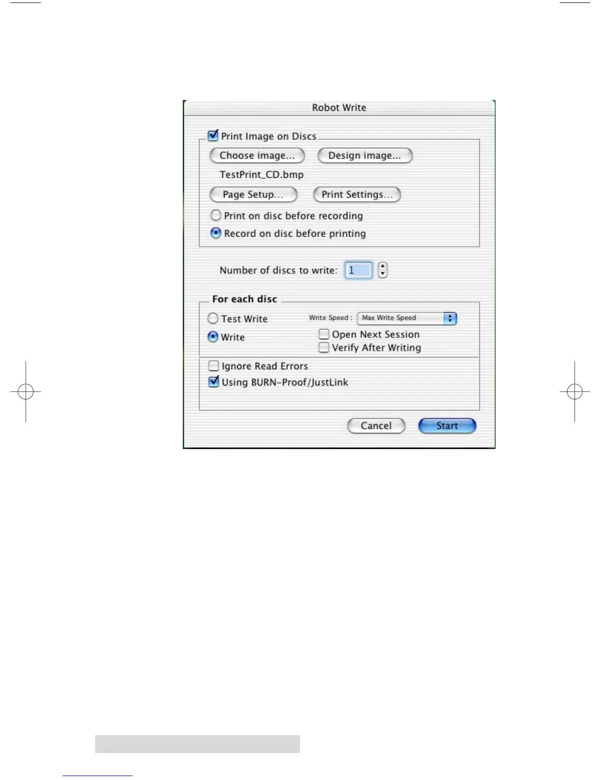 It is important to use the Robot Write Disc instead of Write Disc if