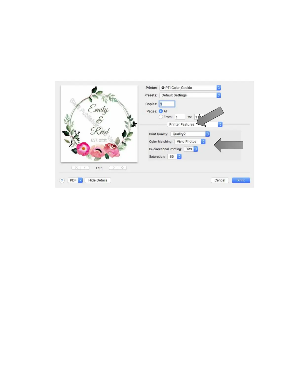 Click on the Swift Publisher 5 drop-down menu and choose Printer Features.