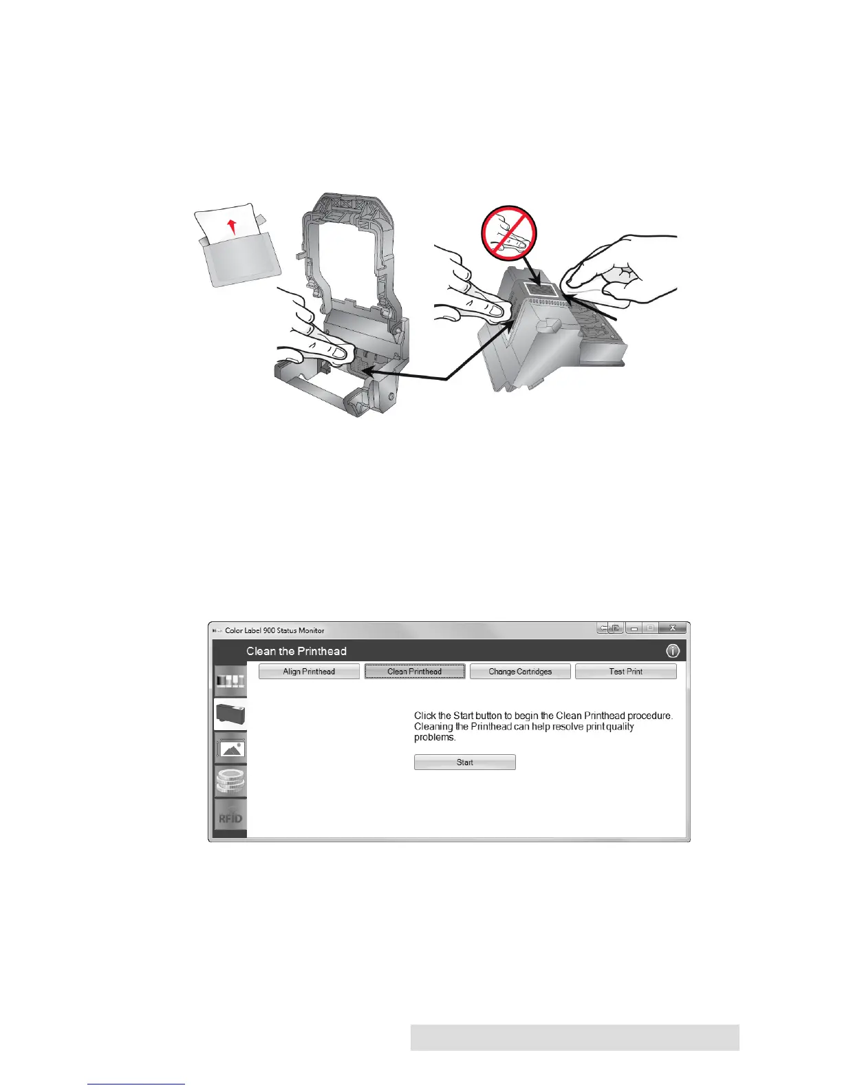 (Area 1, 2 and 4 below). Do not clean the print nozzles! (Area 3).