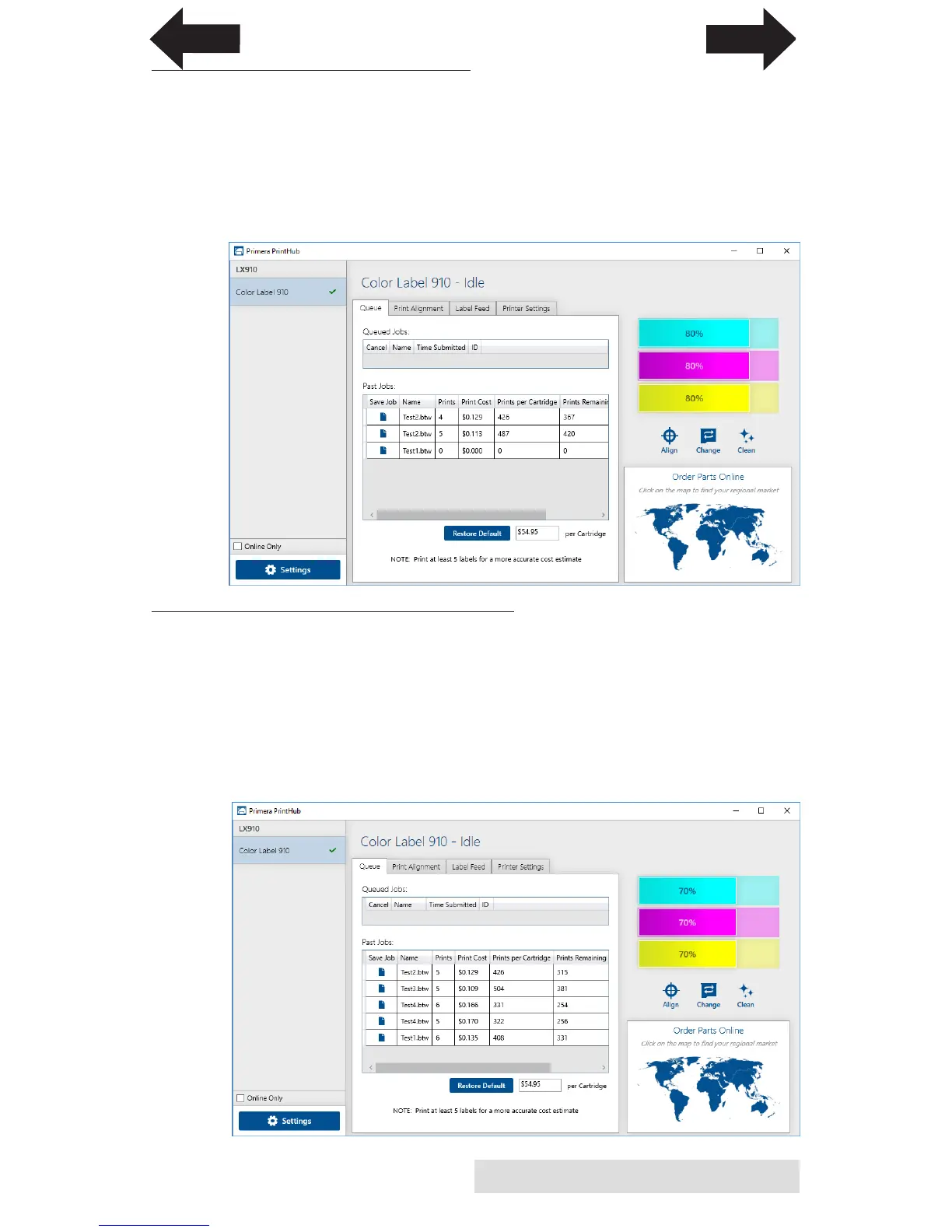 job will show the cost per label based on the cost per cartridge