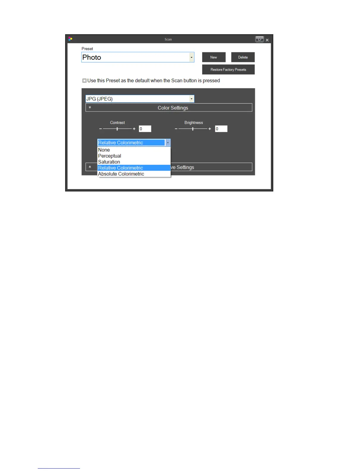 • RelativeColorimetric.(Default) Createsabalancedcoloreffect.