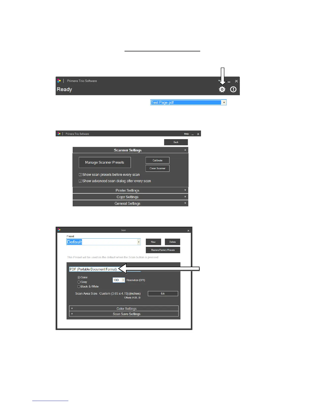 scannersettingsclickonthegear iconatthetopofthePrimeraTrioapplication.