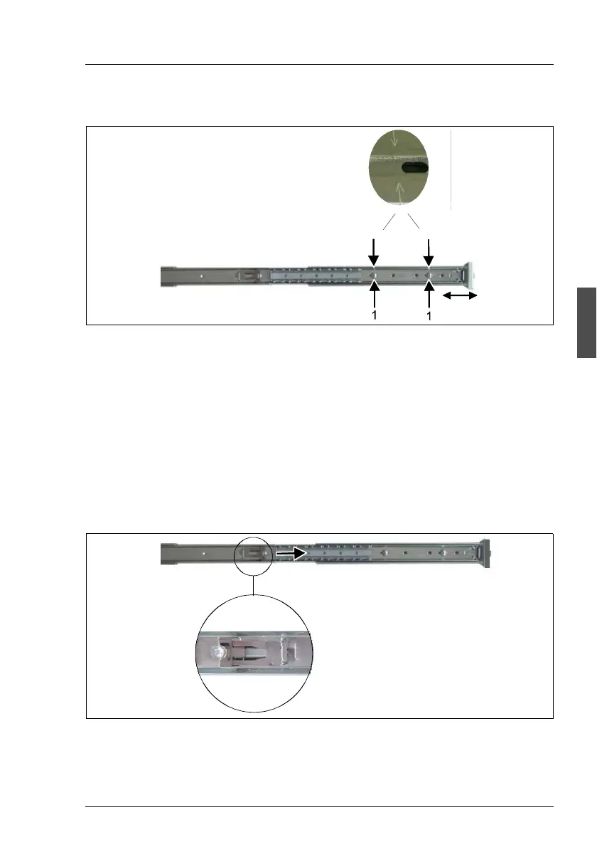 Ê Press in the safety spring (1) and push together the telescopic rails (2) in the