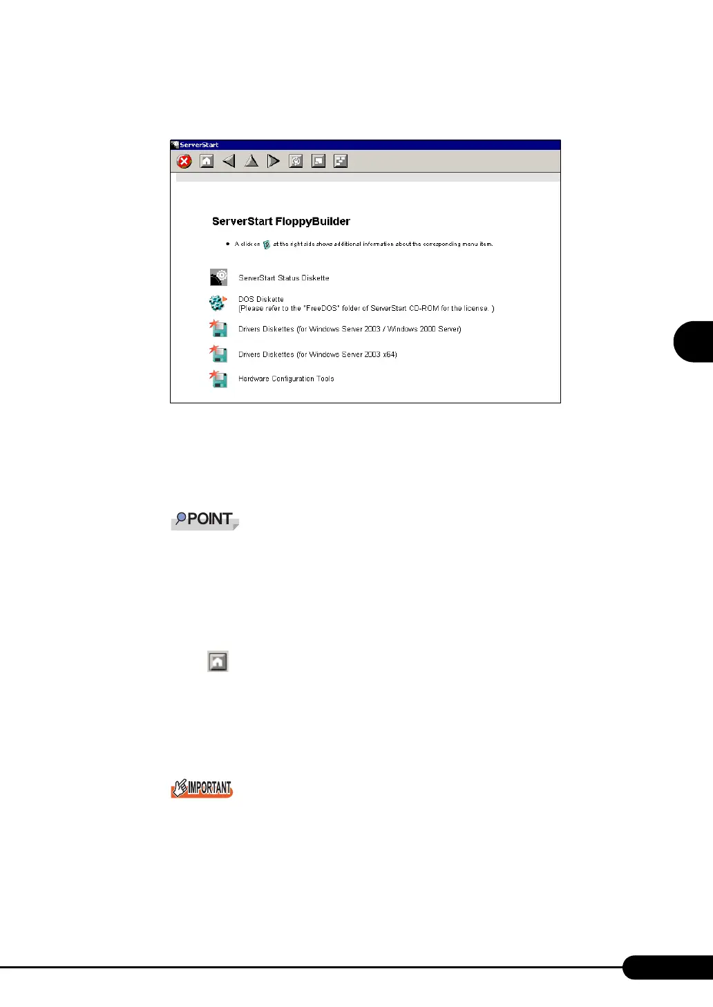 3 Click [ServerStart Status Diskette].