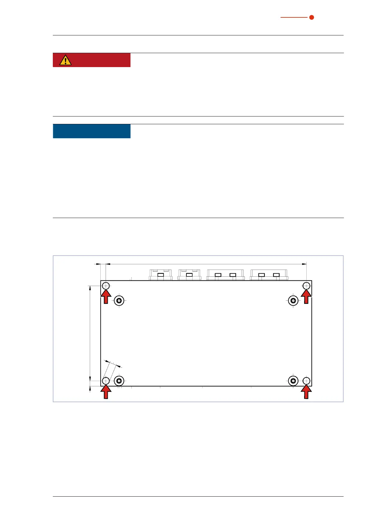 Fig. 6.3: Mounting holes, view underside (Dimensions in mm)