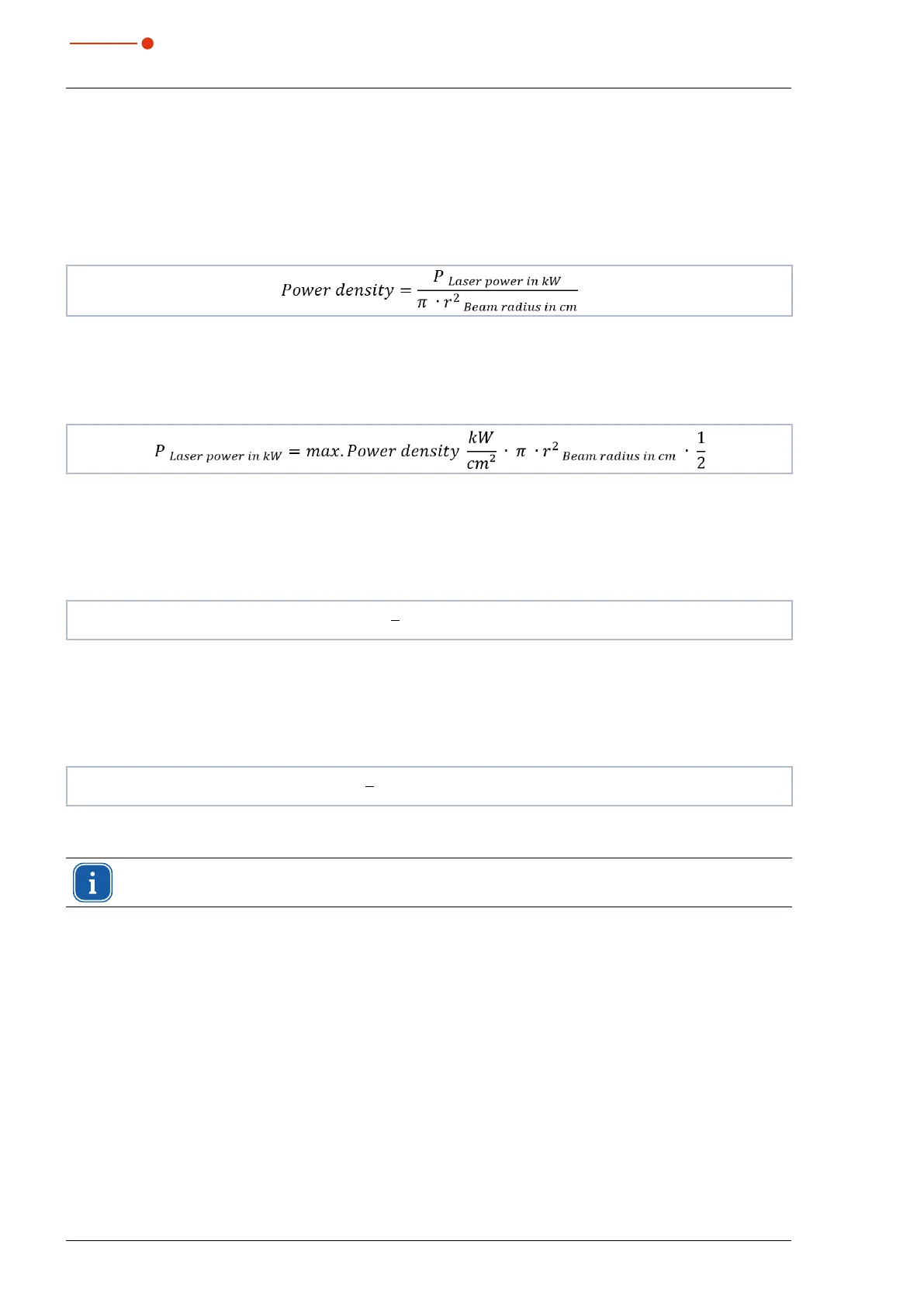 Formula 2: Calculation of the permissible laser power depending on the beam diameter