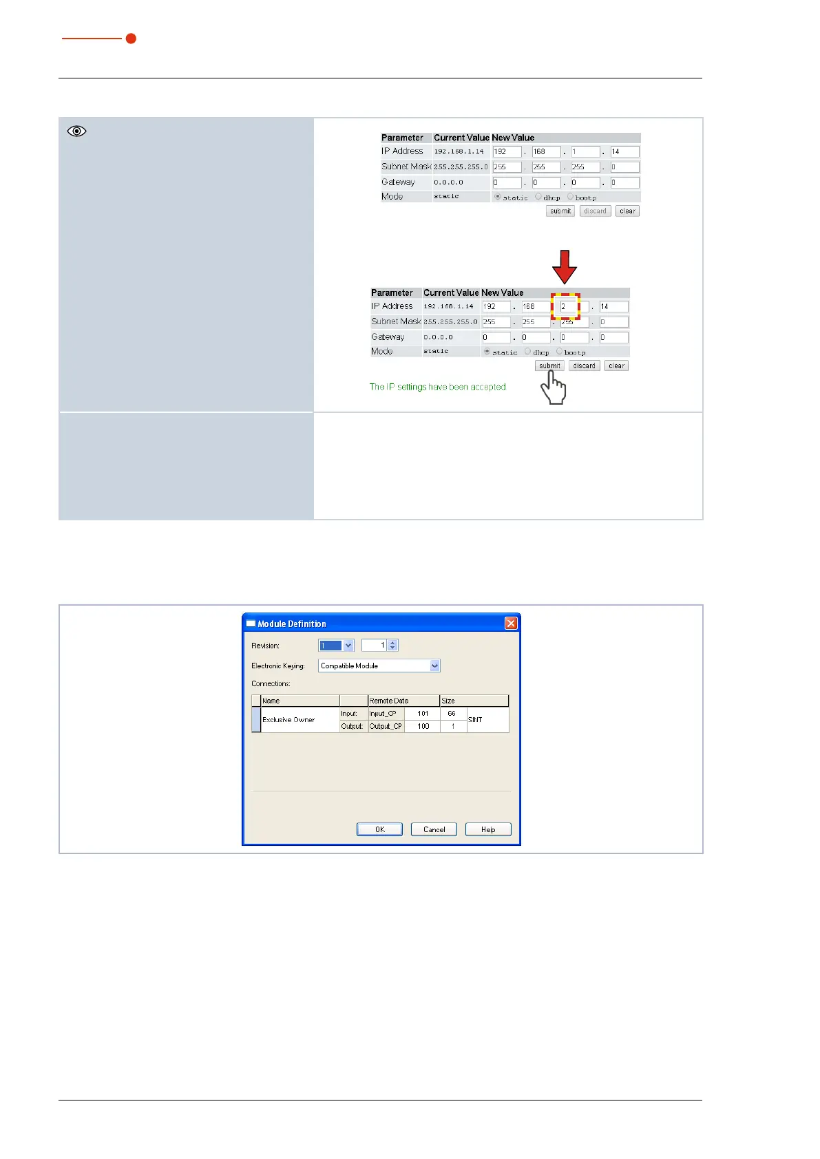 With regard to the module definition, the name “Exclusive Owner” is selected in the drop-down box