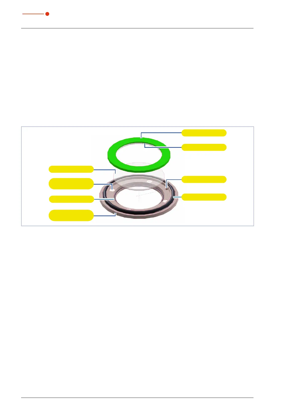 The retaining ring with Teflon disc and protective window must rest flat inside the exchangeable cassette.