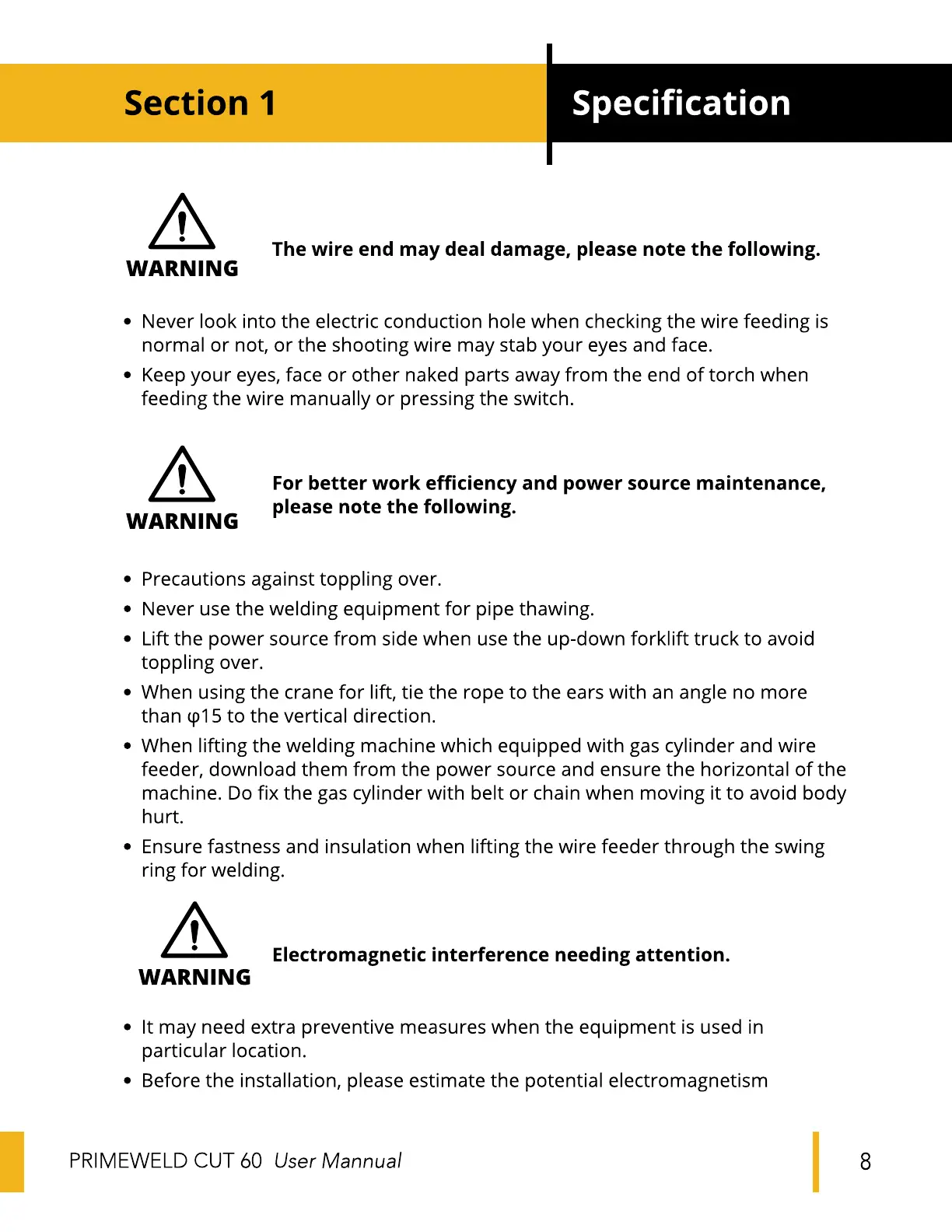 • Ensure fastness and insulation when lifting the wire feeder through the swing