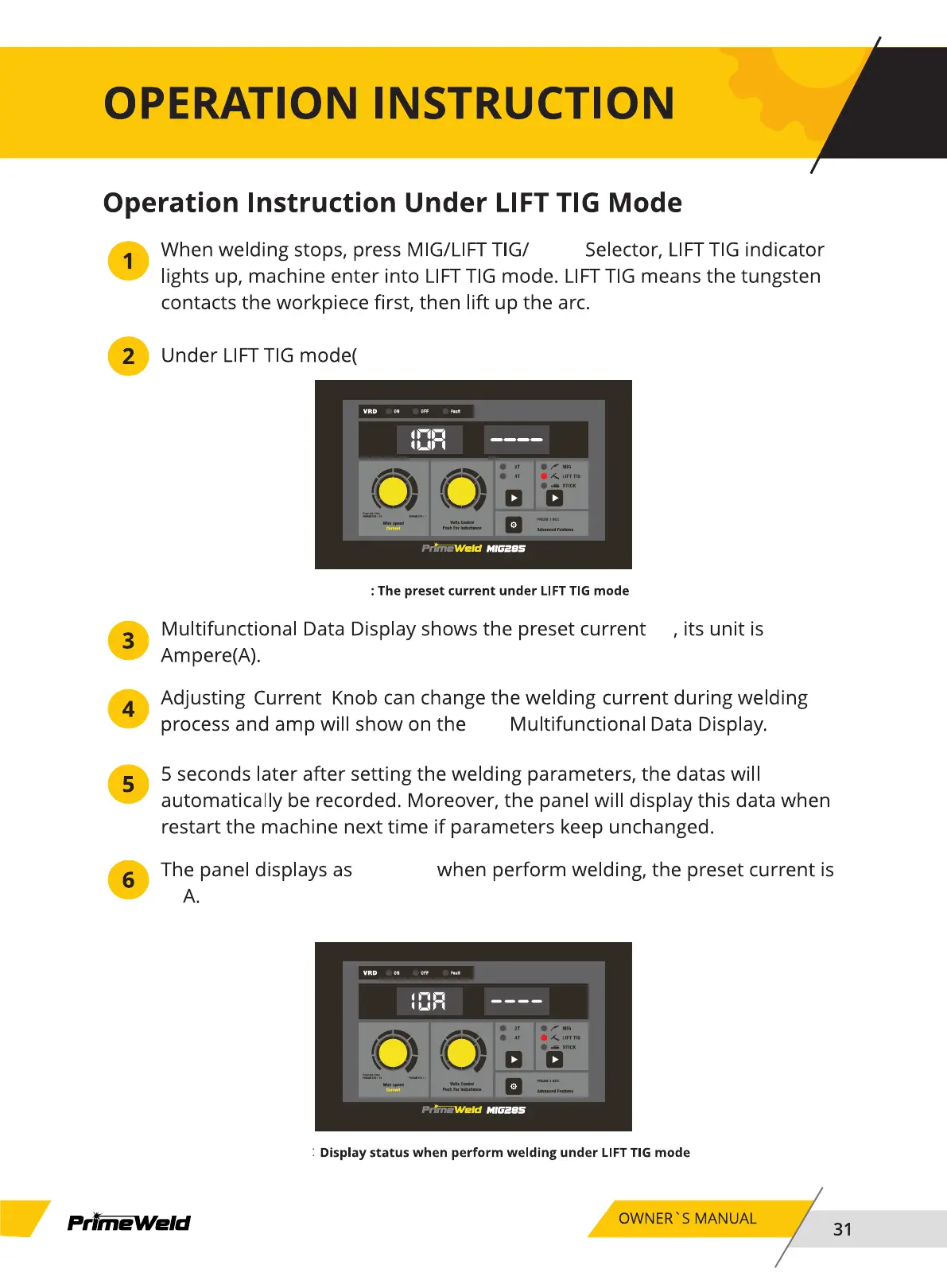 PrimeWeld MIG285 - LIFT TIG Mode Operation