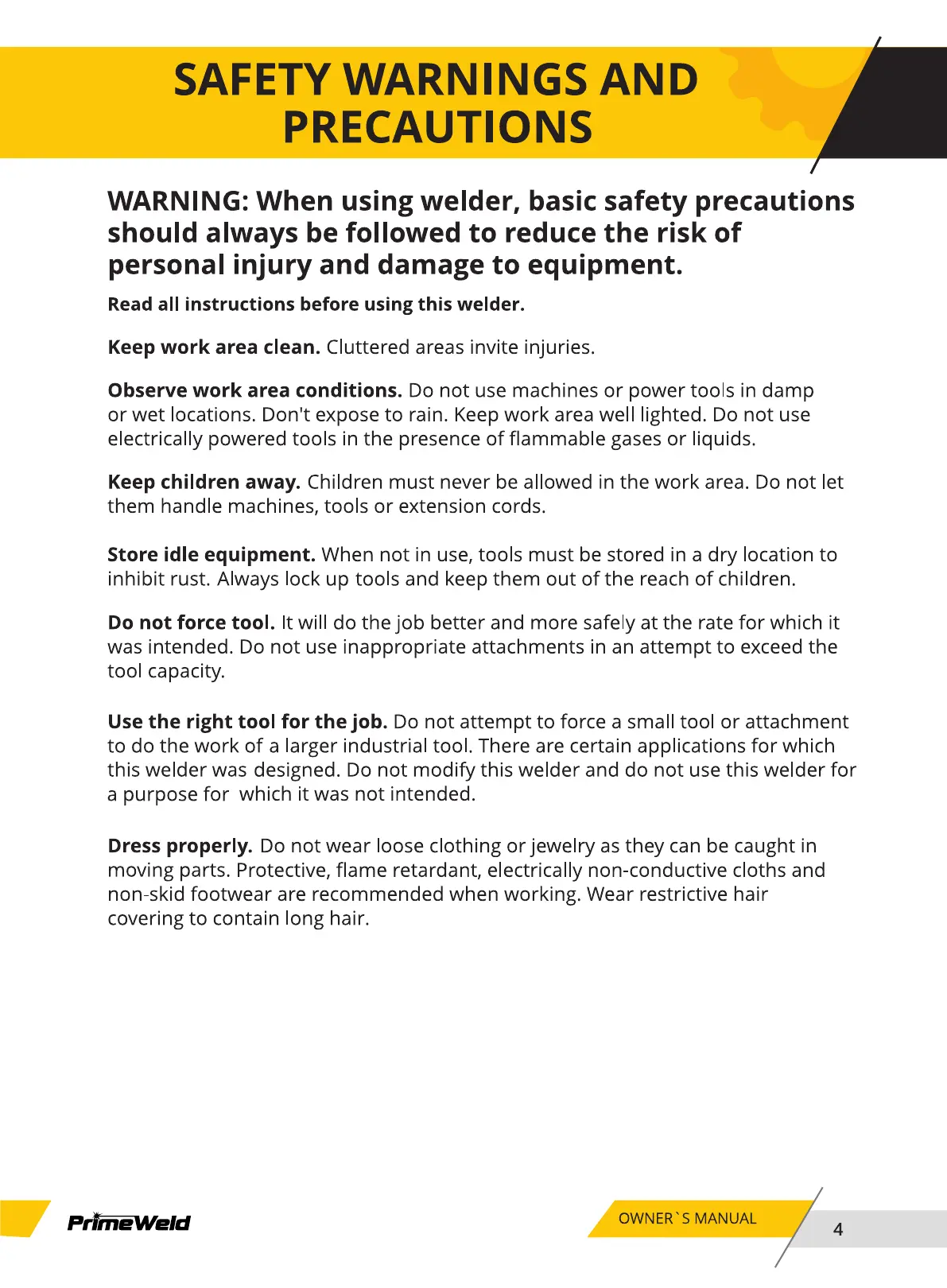 PrimeWeld MIG285 - Safety Warnings and Precautions; General Safety Guidelines