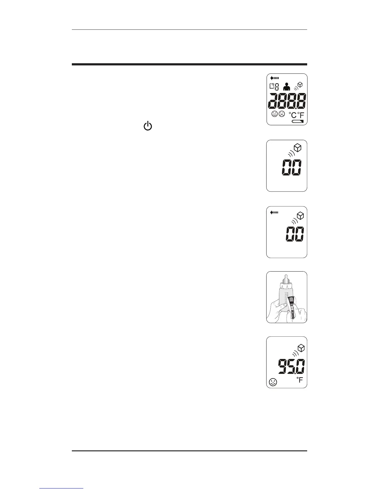 1. Press the Power button to turn the thermometer on. All