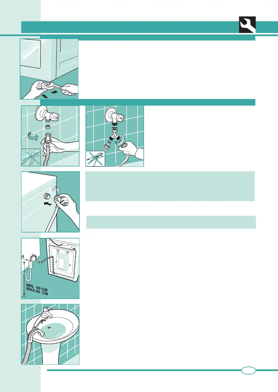 ▼ The water drain hose must be placed at least 60 cm and not more than 90 cm